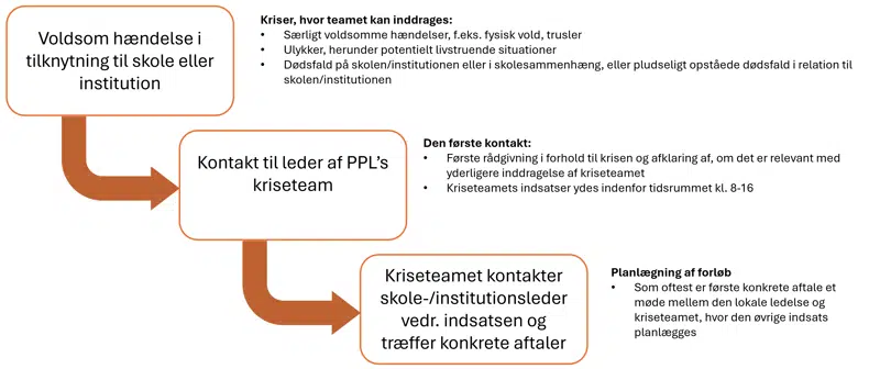 - PPL's kriseteam samarbejder og koordinerer med personale på skoler og i institutioner, politi, brand og redning og evt. andre aktører.